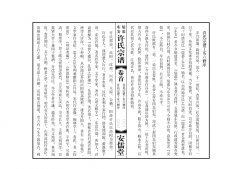 毗陵許氏,來源多支。已知有陽羨茫溪遷東安為安儒堂,元代宜興談村遷淹溪為報本堂,明永樂自高淳遷黃天蕩為福善堂;此外有新河(新閘)燕翼堂,牛塘敦本堂,惜陽堂,宜爾堂,追遠堂,橫林源遠堂,馬山永思堂,等等,源流尚待考查。其中卷一:許氏丁亥六修宗譜序、像贊、許氏探源、家族規范;卷二:人物春秋、修譜紀實、統宗世系世表;卷三:分房世系世表上;卷四:分房世系世表下、附錄