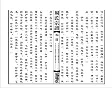 · 提 要常州始祖周亢,舜欽子,常州統宗一世祖。宋德祐初,國子學正,居建康,元兵來犯,不屈城陷,公舉家絕食殉難,遺一小子太平兒者,隨舅氏于海南幸免。譜有亢公像贊云:“士當臨難,茍免全軀。朝仇夕臣,忝焉襟裾;卷一:乙丑重修序、題詞、功德榜、追蹤尋根記、常州武進周姓源流考略、人物春秋;卷二:周氏原始考、老譜舊序、題詞、譜贊;卷三:周氏圖騰及釋義、奉天誥敕、像贊、喪服圖;卷四:老譜人物傳序、墓志銘、老譜領譜字號;卷五:老譜行實、行狀、詩詞;卷六至卷十二:大房現有戶數人數文化程度統計表、統宗世系世表、各分支世系世表