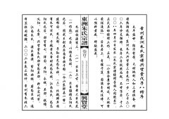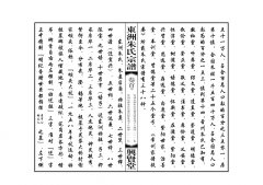 · 提 要朱姓族源有三:(一)出自上古,帝舜大臣朱虎(一作彪)之后,以祖名為姓;(二)出自顓頊高陽氏之后,周武王封其后裔曹挾于邾(今山東鄒縣一帶),建邾國,楚滅邾,子孫去邑為朱姓。(三)北魏鮮卑族有朱可渾氏,于魏孝文帝時改為朱姓。興賢堂朱氏郡望為吳郡,即今蘇州市東洲朱氏,朱熹后裔。始祖朱熹,二世,三世鐸,四世澹(遷宜興),五世相,六世達兼,七世椅,八世陳寶,九世培,十世彥亨(培子)遷東洲始祖;卷一(卷首):跋、序、凡例、像贊、誥命、朱熹遺跡、墓圖、詩集、朱氏遷徙篇、修譜紀實、祠志祠墓、歷屆修譜芳名錄、民國續修宗譜領譜字號、朱氏家法典范等,卷二:朱氏世家、原姓論與源流、朱氏統宗世系圖、源流世表、統宗世系世表,卷三至卷十:各分支世系世表