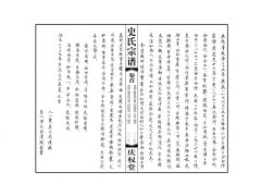 · 提 要明弘治庚戌年(一四八○年),四十三世文仲公遷居牛塘橋史家巷,其侄四十四世景順公遷居溝圩里史家村,為始遷之祖,距今已經(jīng)五百多年,延貫二十世,現(xiàn)今后裔亦有散居常州地區(qū)。卷一(卷首):史氏圖騰、新譜題詞、重修序、凡例、溝圩里史家村概述、人員統(tǒng)計表、編后記、舊譜序、奉天敕命、誥敕、舊譜題詞、先祖像贊、溝圩里分祠圖、墓圖。卷二:增修宗譜綱領(lǐng)、譜例、校正宗錄、告成說、跋。卷三卷四卷五:統(tǒng)宗世系世表、各分支世系世表