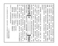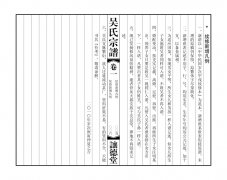 · 提 要本譜始祖吳玠(一○九三—一一三九),字晉卿,寧夏人,為泰伯第七十四世。宋代四川宣撫使。弟璘,字唐卿,官太傅,封新安郡王,均為抗金名將,中興重臣。長子拱,次子撫,扈駕南渡,遂遷江南。拱公后裔秉德,長子,為圩塘吳家村始遷祖;秉德弟秉常之子佩,為百丈河東支始遷祖;撫公后裔秉珙子倀、秉誠子俸、秉澤子僖,為胡莊戴家村、卞墅談家村、溝東村、丁莊村諸支之始遷祖。卷一凡例、譜序、像贊、跋等。卷二統宗世系圖、百丈河西河東世系圖。卷三卷四為世表部分。