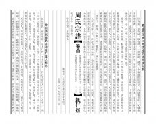 · 提 要遷常始祖孚先,字伯忱;恭先,字伯溫,為監殷公五世孫,兄弟倆從師伊川先生程頤,為理學之士。卷首(卷一):題詞、潞城周氏親仁堂告族人書、續修凡例、原序、凡例、祖訓家規、祠規卷二:宗賢考、歷代烈女、附集序、詩、潞城八景七律、周氏新建祠堂記、壽考錄、節孝錄、卷四:古衣冠圖引、像贊、宗祠祖墓圖、卷五:先賢傳序、卷六:統宗世系世表卷七:獻譜、迎譜留影、風采錄卷八:各分支世系世表、潞城概況記、文人榜、領譜芳名錄。